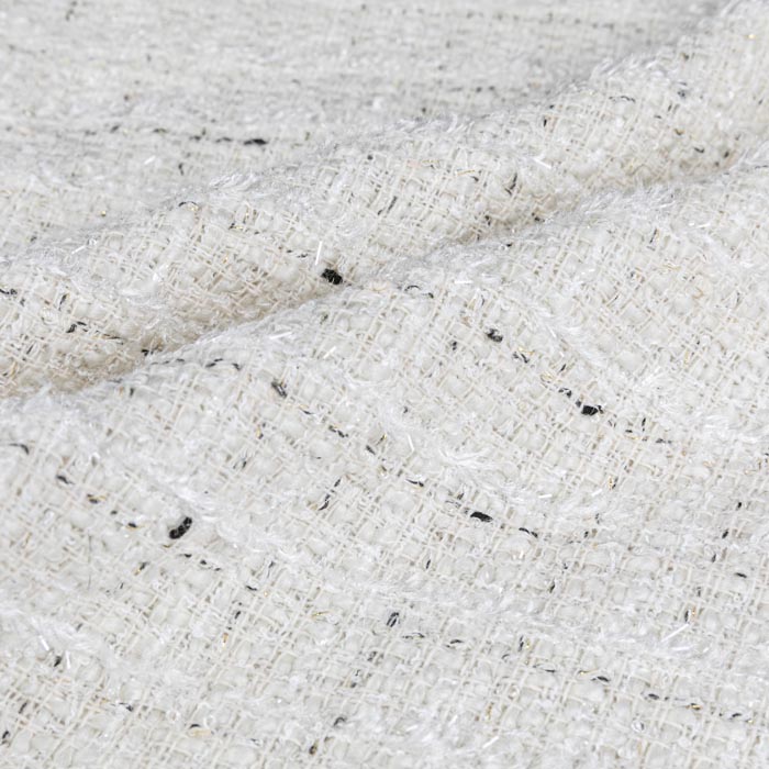 Kain mewah utawa kain gaya Chanel, fitur sing paling khas yaiku kain tweed. Fitur paling gedhe saka kain tweed yaiku "kembang". Iki minangka tekstil sing dirajut kanthi rong utawa luwih jinis benang tunggal lan benang campuran dadi tokoh geometris. Kain kelas dhuwur lan klasik nggawe siap kanggo nyandhang luwih tekstur. Gaya desain sing entheng lan mewah ndadekake jas saka seri kain sing apik banget awet. Amarga kain gaya Chanel minangka kain mewah kasar sing ngemot wol, sawetara unsur kayata tassels, tombol vintage lan payet ditambahake kanthi bener supaya cocog karo siluet kaku, sing nduweni daya tarik unik.
